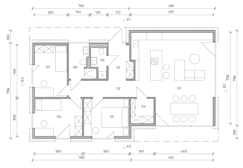 Przedstawione wizualizacje są poglądowe i prezentują przykładowe warianty wykończenia elewacji i wnętrz. Umiejscowienia okien i innych elementów mogą się różnić w zależności od wariantu układu funkcjonalnego.